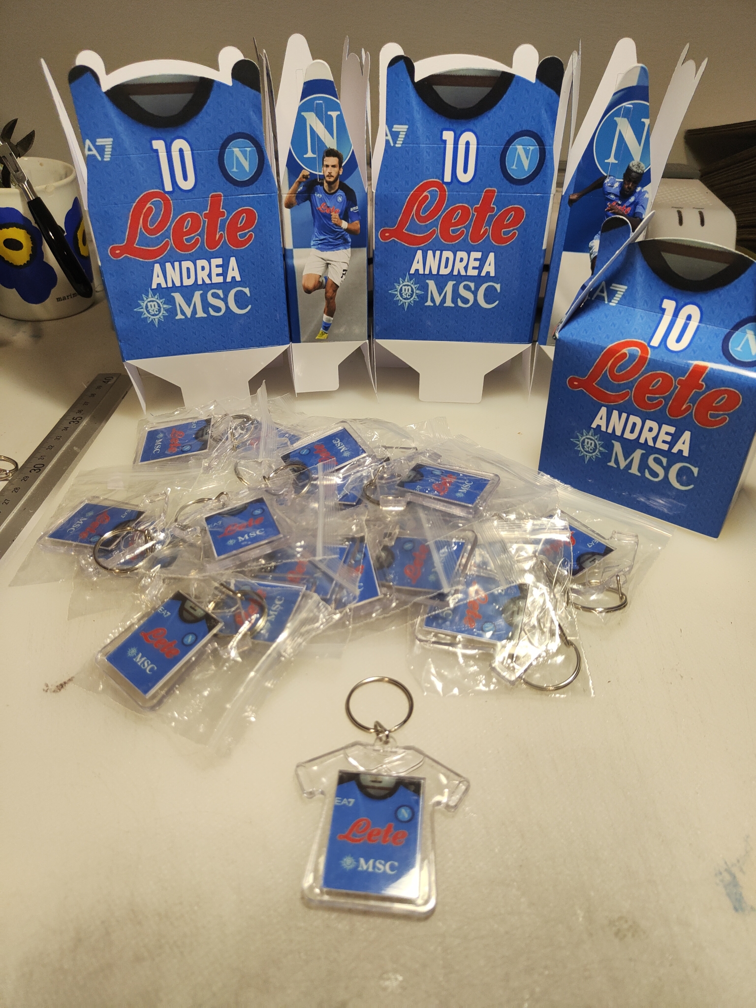 Va molto di moda organizzare le feste di compleanno dei nostri bambini le cosidette festa di compleanno a tema Napoli. Qui non vendiamo tutti gli accessori come piatti, bicchieri, posate, tovaglie copri tavolo, festoni ma, ti possiamo aiutare a realizzare scatoline regalo addobbi e gadget di fine festa dei personaggi famosi o gadget regali da regalare a fine festa di compleanno per bambini maschietti e bambine femminucce.