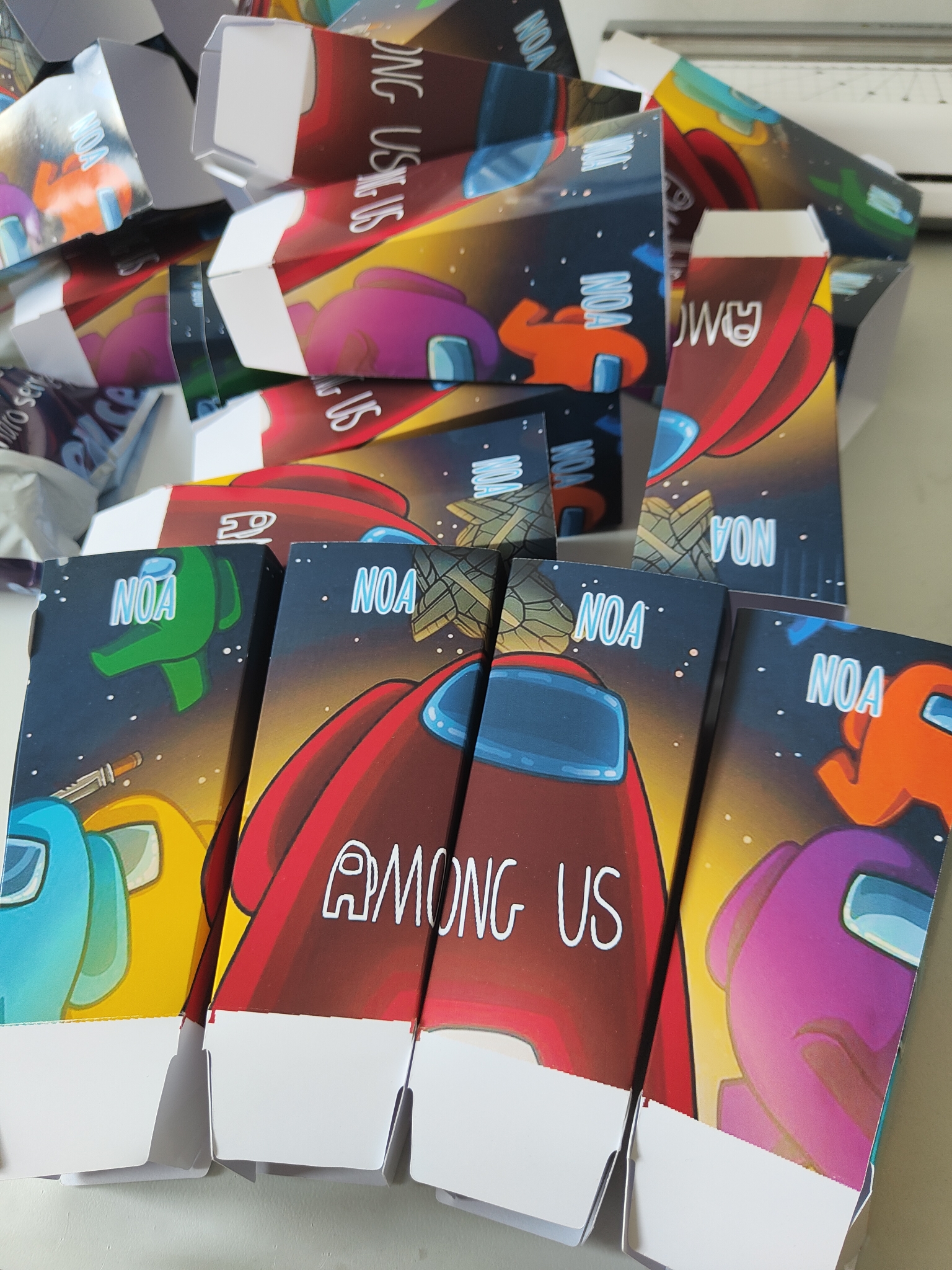 Va molto di moda organizzare le feste di compleanno dei nostri bambini le cosidette festa di compleanno a tema Among US. Qui non vendiamo tutti gli accessori come piatti, bicchieri, posate, tovaglie copri tavolo, festoni ma, ti possiamo aiutare a realizzare scatoline regalo addobbi e gadget di fine festa dei personaggi famosi.