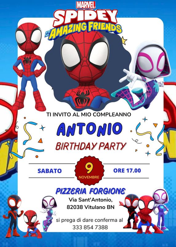 Biglietti festa Spidey personalizza inviti carta e digitale
